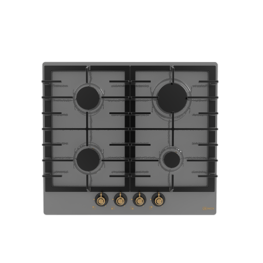 •60 cm 4 Gözü gazli 1 Kuvvetli 2 Normal 1 Ekonomik Yanici Göz •Bulasik makinesinde yikanabilir emaye izgara •Antrasit emaye üst tabla •Dügmeden kumandali otomatik atesleme •Gaz tasarruflu Italyan yanicilar •Ergonomik metal görünümlü dügme •Italyan gaz emniyet sistemi •LPG’ye uyumlu ücretsiz gaz dönüsüm kiti